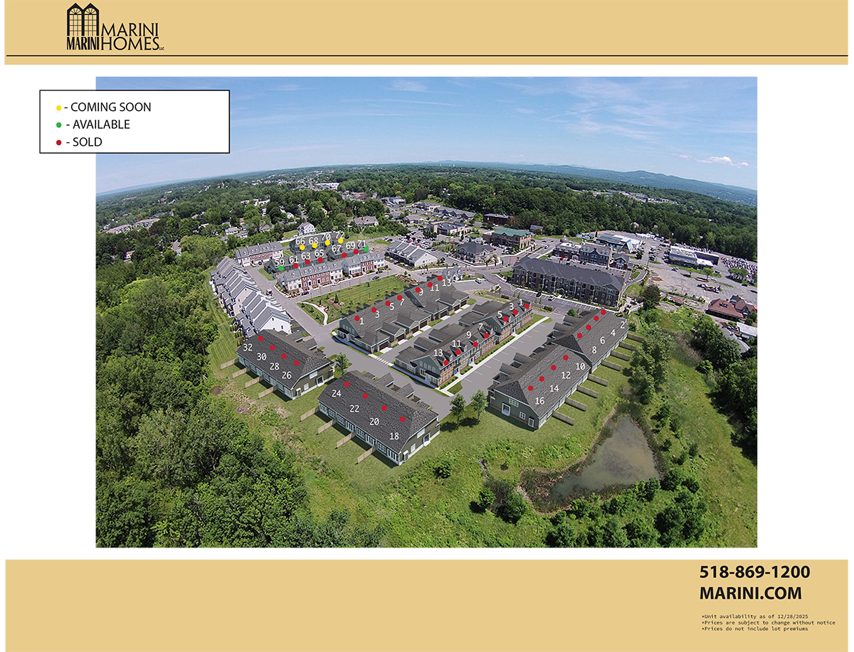 The Village at Shaker Creek is a luxury maintenance free townhome community in the best location in Latham. Brand new townhome designs from leading nationally renowned Architect! All townhomes feature open floor plans with volume ceilings, first floor master bedrooms, two bedrooms and a loft on the second floor. There is plenty of space to create flex space options such as a home office or exercise room. Contact one of our sales associates today for more information.